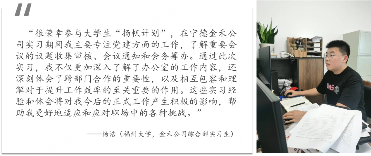 为起劲响应市委人才事情向导小组聚会的安排安排,共青团宁德市委启动2024年度大学生实习“扬帆妄想”,强化人才支持,为“宁德篇章”的雄伟蓝图孝顺实力。市Ag亚洲集团公司所属企业——宁德市金禾房地产有限公司(以下简称“金禾公司”)迅速响应招呼,乐成招募了3名大学生加入实习行列。